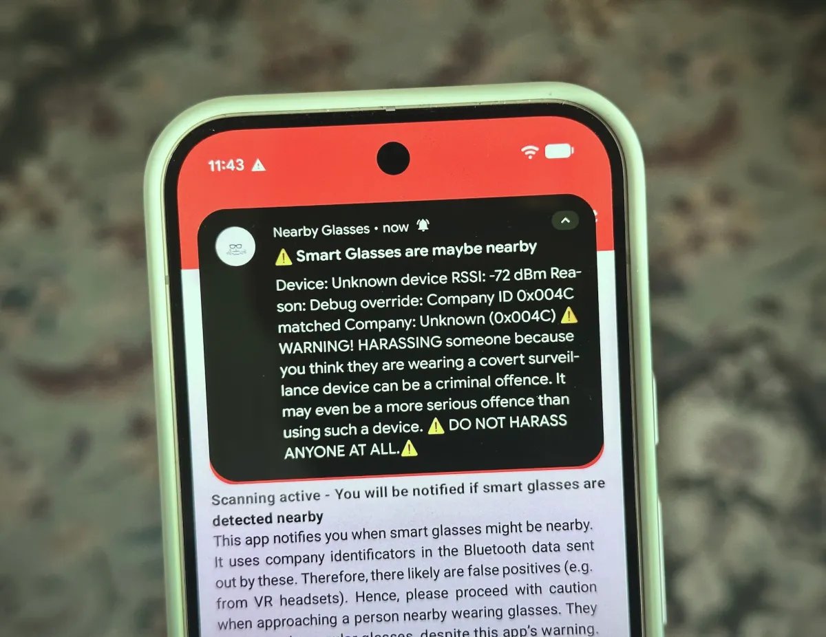 But now there is an app that can detect and alert you when someone nearby is wearing smart glasses, or potentially other always-recording tech.
