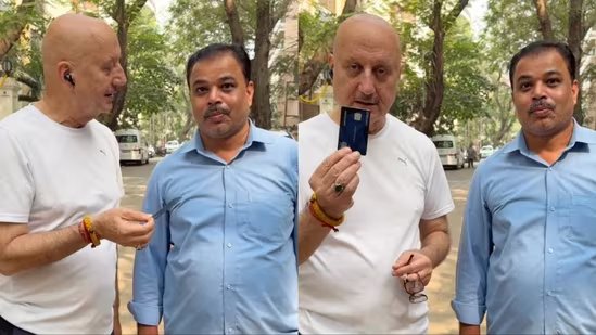 In the video, the duo stood next to each other as Anupam spoke with him as well as his followers. “Sanjay Yadav ji, aap bada mahan aadmi hain. Mera subah morning walk pe jaate samay, mere credit card gir gaya tha, aur main bada dhundha, bohut pareshaan tha, because us par PIN nahi tha (takes out and shows his card). Phir mujhe Dattu ji ka phone aaya ki credit card kisiko mila hai (Sanjay Yadav, you are a great man. This morning, while I was going for my walk, my credit card fell, and I searched for it a lot and was very worried because it didn’t have a PIN. Then I got a call from Dattu ji saying that someone had found my credit card).”