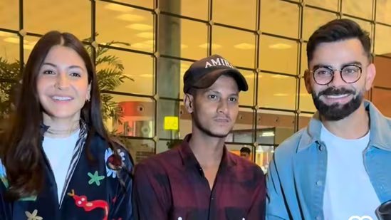 On Monday, a video surfaced online showing Anushka and Virat, known as one of India’s most admired power couples, at the airport. Anushka, who wore a white t-shirt, coupled it with a light velvet jacket and black pants, appeared relaxed and cheerful as they posed for photos with fans before heading into the terminal. At one point, Anushka jokingly remarked to Virat, who looked cool in a white t-shirt, coupling it with a denim shirt and black pants, “Esa lag raha hai shadi me photo khicha rahein hain. (It feels like we’re taking wedding photos), prompting laughter from the cricketer before they made their way inside.
