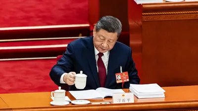 China’s President Xi Jinping pours tea at the National People’s Congress in Beijing. (Qilai Shen/Bloomberg Photo)