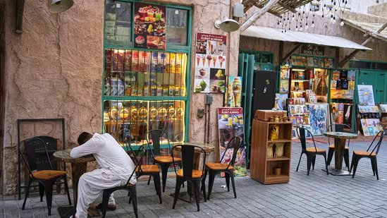 Dubai, Abu Dhabi news LIVE: A man naps on a cafe table at the empty Al Seef market, next to the historic Al Fahidi neighborhood along Dubai Creek, one of the main tourist areas of Dubai, United Arab Emirates, Friday, March 13, 2026, as tourism slows amid regional tensions linked to the Iran war.