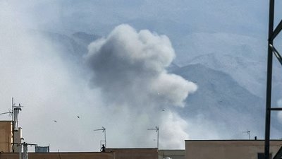A plume of smoke rises following a reported explosion in Tehran. (AFP)
