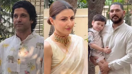 Among the first guests to arrive was actor-director Farhan Akhtar. The multi-hyphenate star kept his look relaxed yet stylish, stepping out in a white kurta decorated with elephant and tree motifs. His arrival set the tone for what appeared to be a warm and cheerful evening.