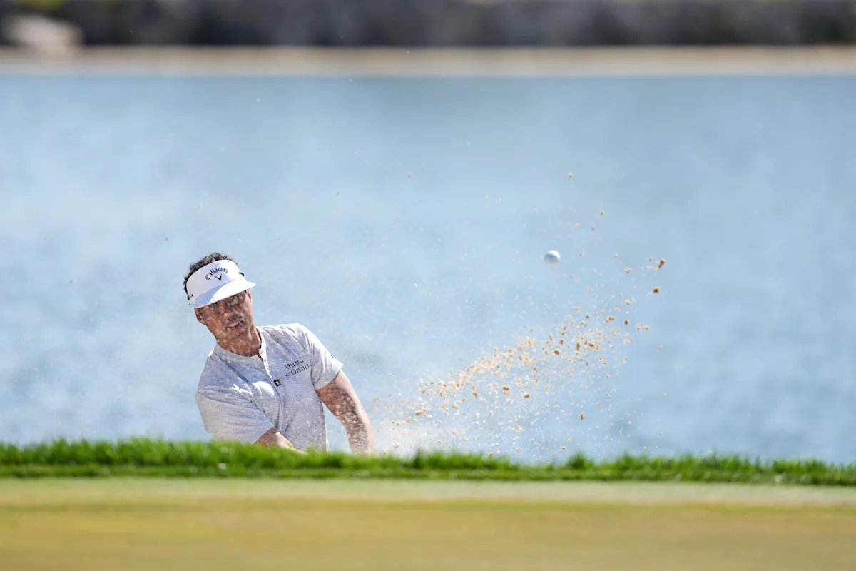 PALM BEACH GARDENS, FLORIDA – FEBRUARY 27: Isaiah Salinda of the United States plays a shot from a bunker on the 18th hole during the second round of the Cognizant Classic 2026 at PGA National Resort And Spa on February 27, 2026 in Palm Beach Gardens, Florida. (Photo by Raj Mehta/Getty Images)