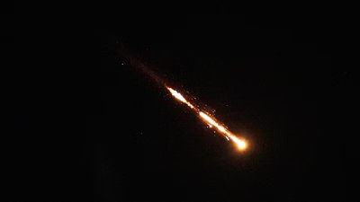 Trails of a cluster missile fired from Iran cross the sky over Tel Aviv, Israel, Wednesday. (AP)