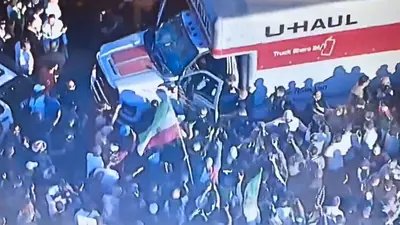 The incident unfolded as hundreds of demonstrators gathered to show support for protesters in Iran amid weeks of unrest linked to the country’s economic crisis. What began as a peaceful march quickly descended into chaos when the box truck entered the protest area.