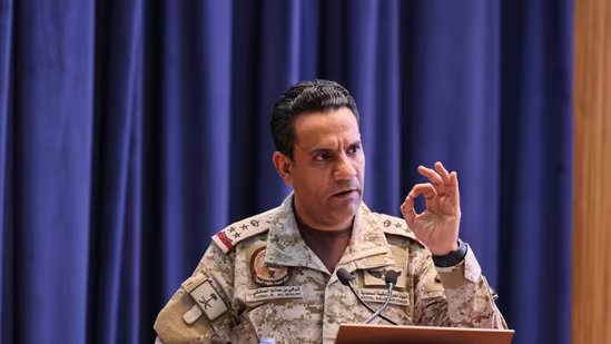 Saudi-led coalition spokesperson Maj. Gen. Turki al-Maliki at a news conference in Riyadh, Saudi Arabia, last week.