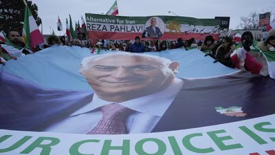 Many at the rally waved placards showing Pahlavi, some that called him a king. The son of Iran’s deposed shah has been in exile for nearly 50 years but is trying to position himself as a player in Iran’s future.